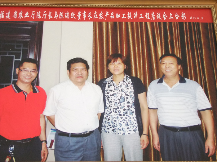 福建省農(nóng)業(yè)廳陳廳長與陳瑞躍董事長在農(nóng)產(chǎn)品加工提升工程座談會(huì)上合影